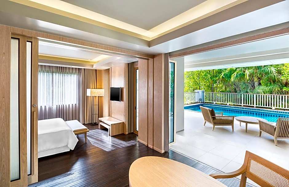 This suite's standout features are the pool with a view and spa bath. This spacious suite comes with 1 living room, 1 separate bedroom and 1 bathroom with a walk-in shower and free toiletries. Boasting a terrace with garden views, this suite also features air conditioning and a flat-screen TV with cable channels. The unit has 1 bed.